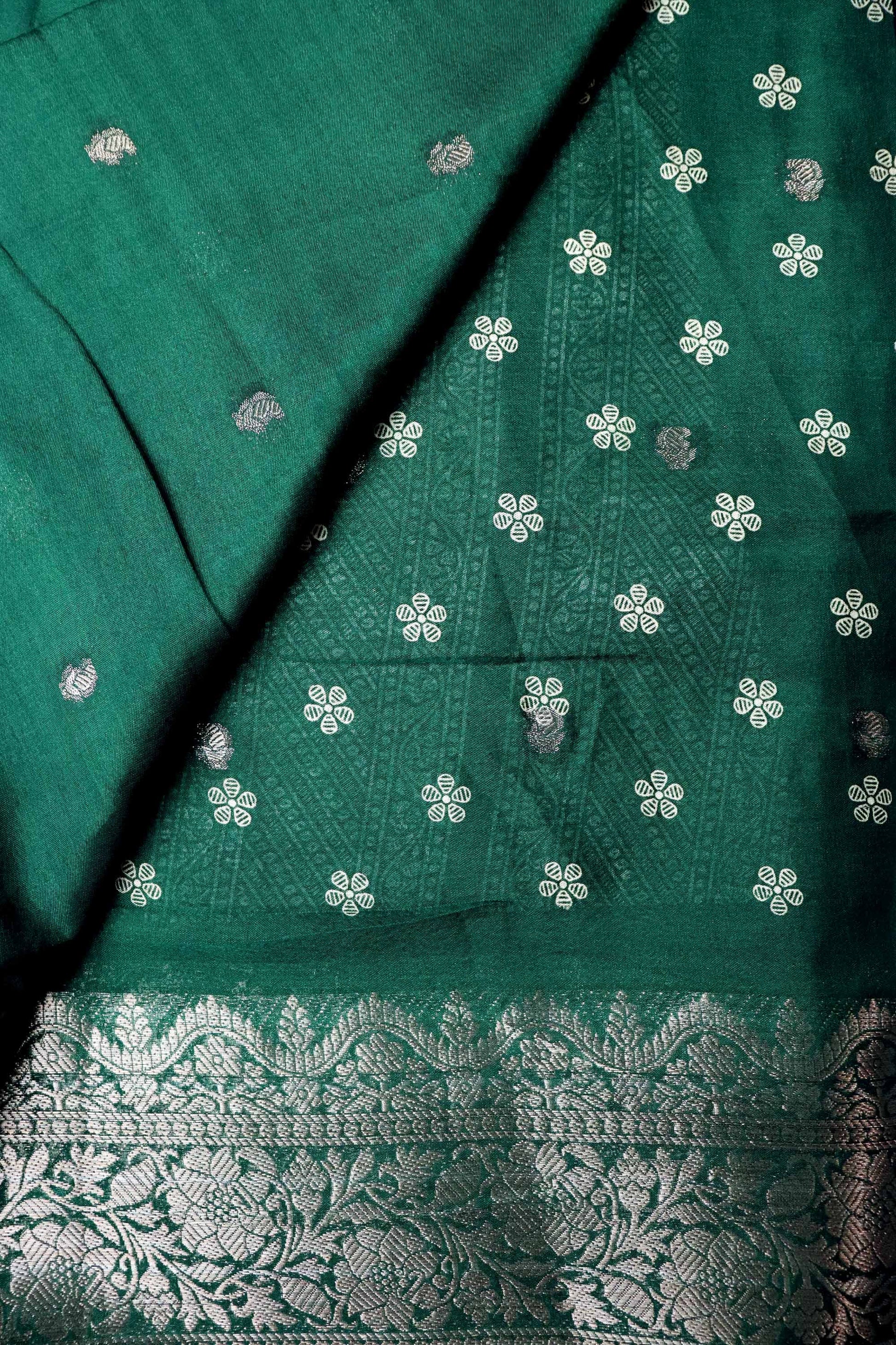 Designed to suit every celebration, each saree comes with a matching running blouse, creating a complete and refined traditional look. Available in a curated range of rich, elegant colours to match every style and mood.
