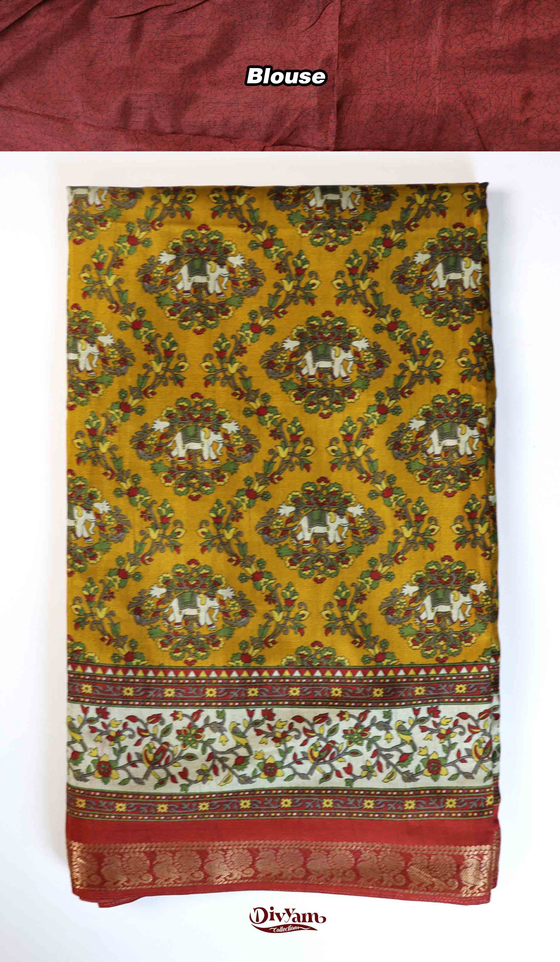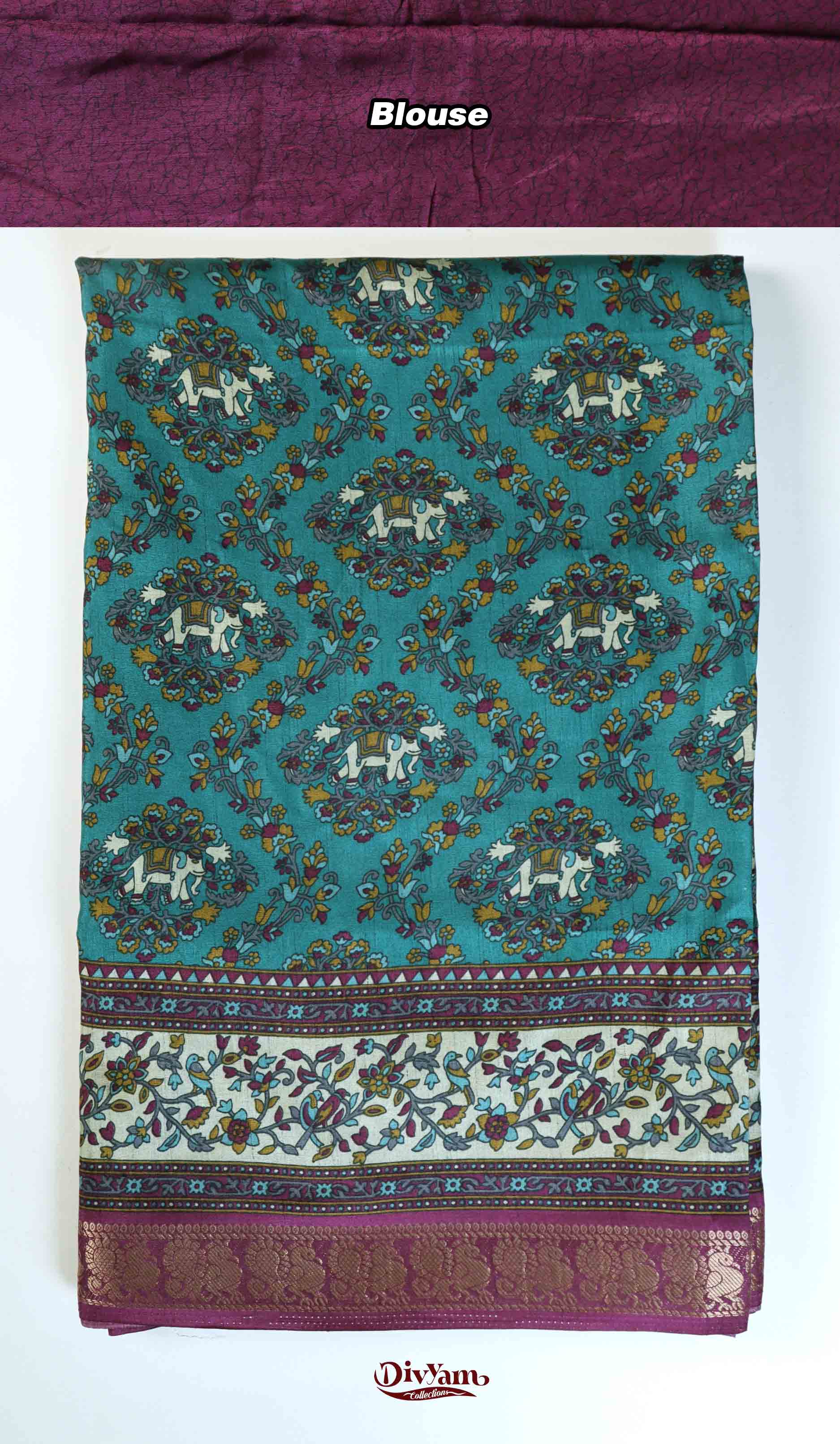 DC182 | Designer Maheshwari Silk Saree with Elephant Motifs & Kalamkari Border | New Color Combos