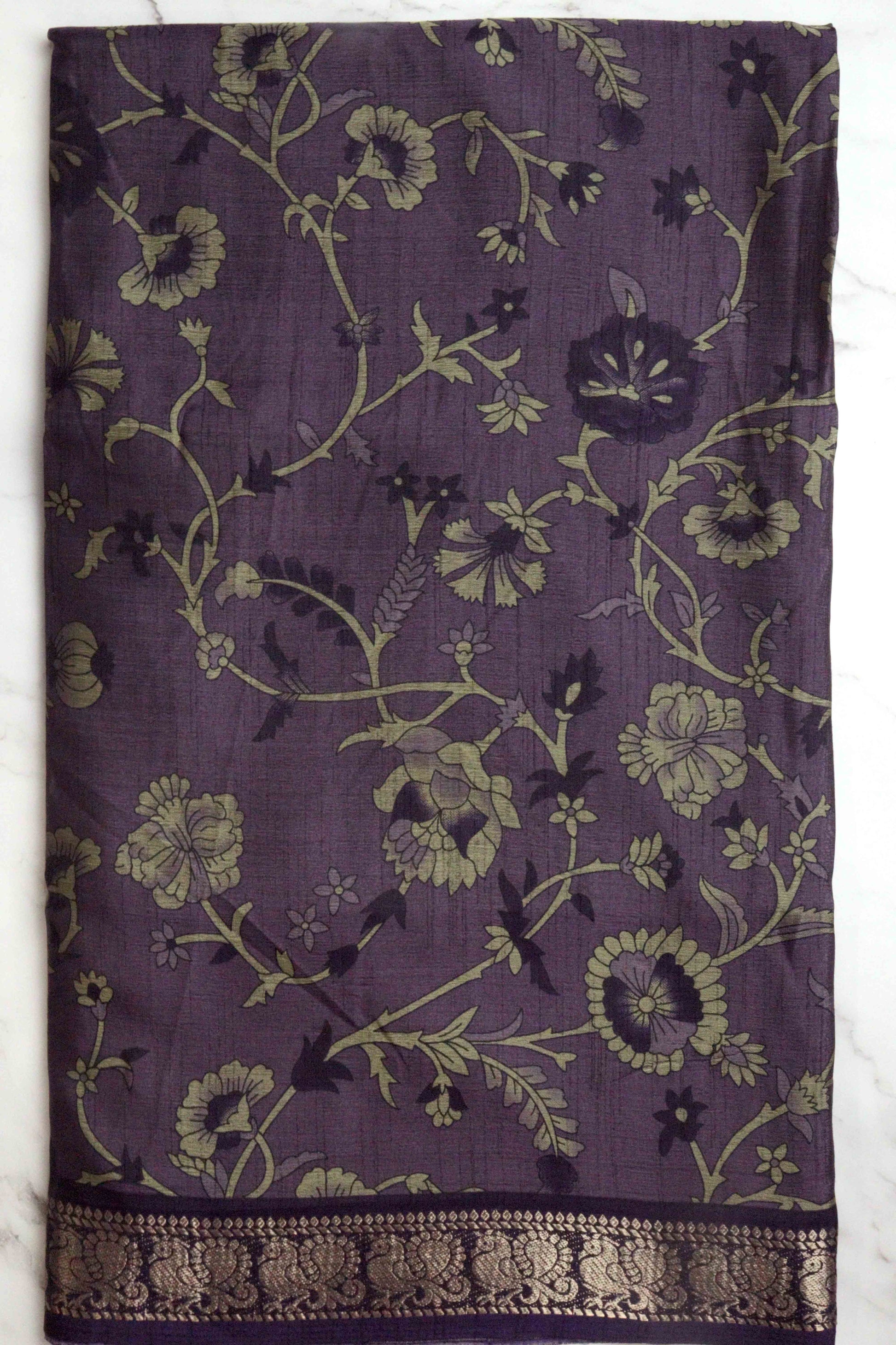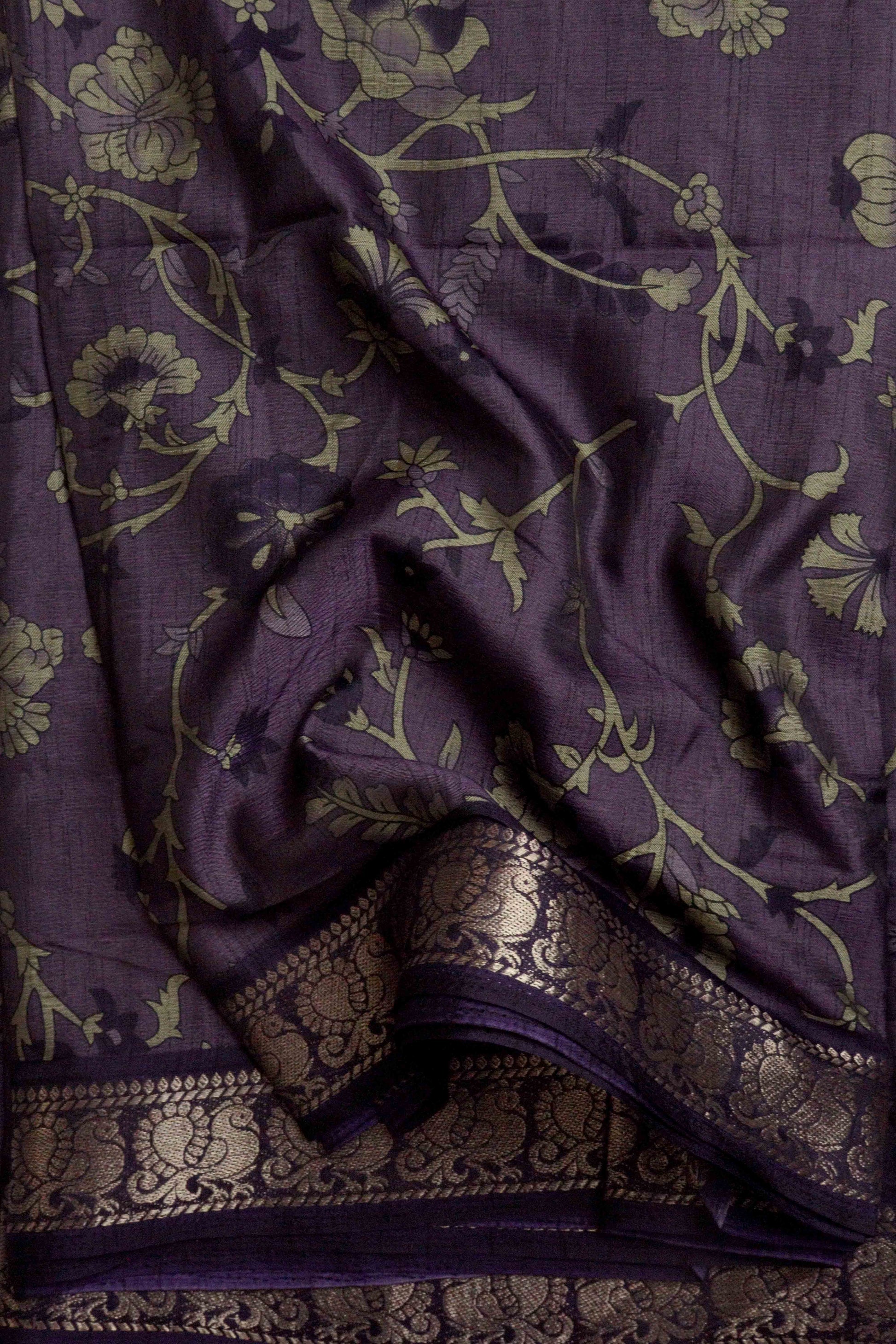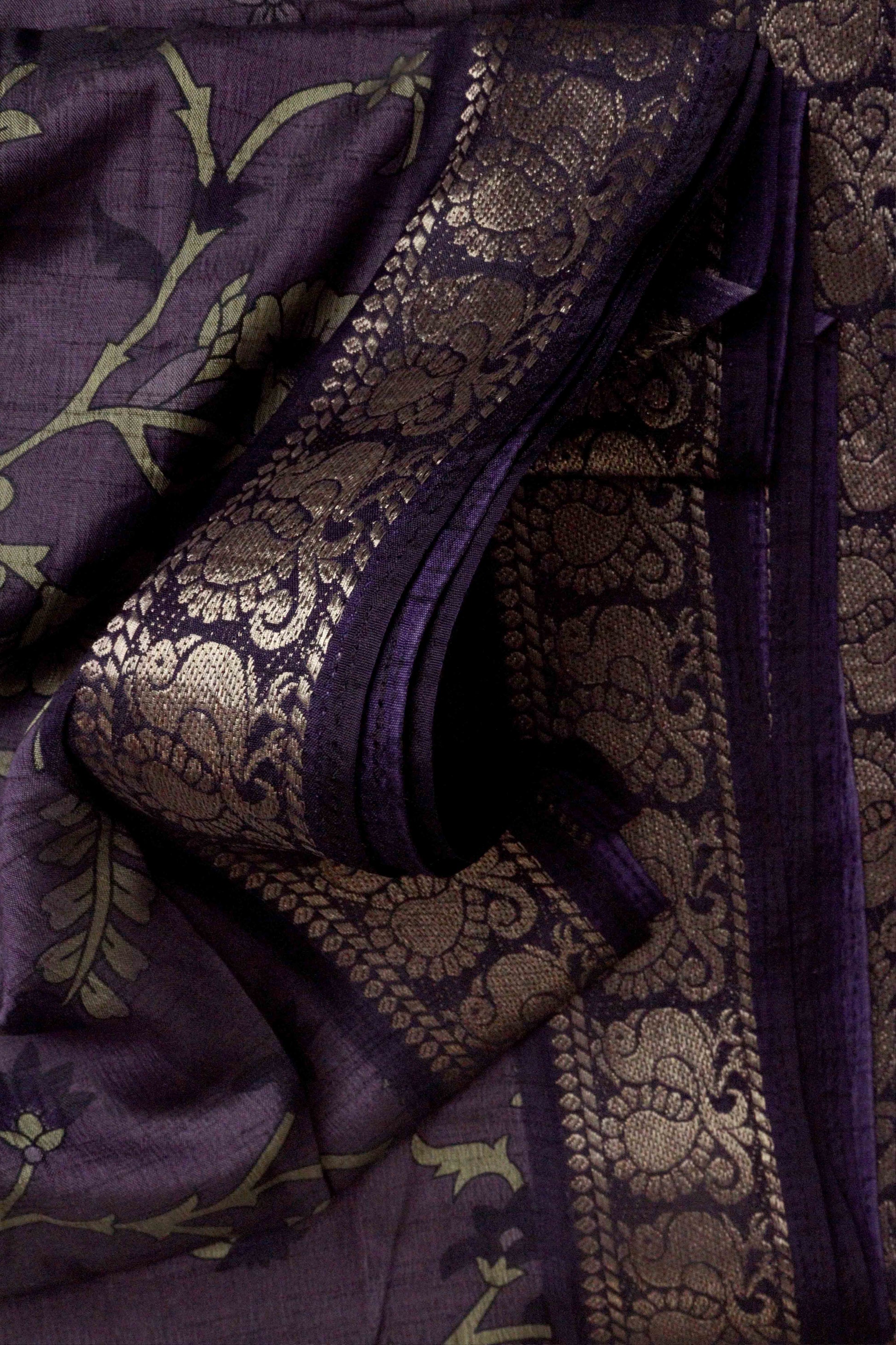 DCMS39 Royal Purple Maheshwari Silk Sarees with Narayanapattu Border & Kalamkari Print