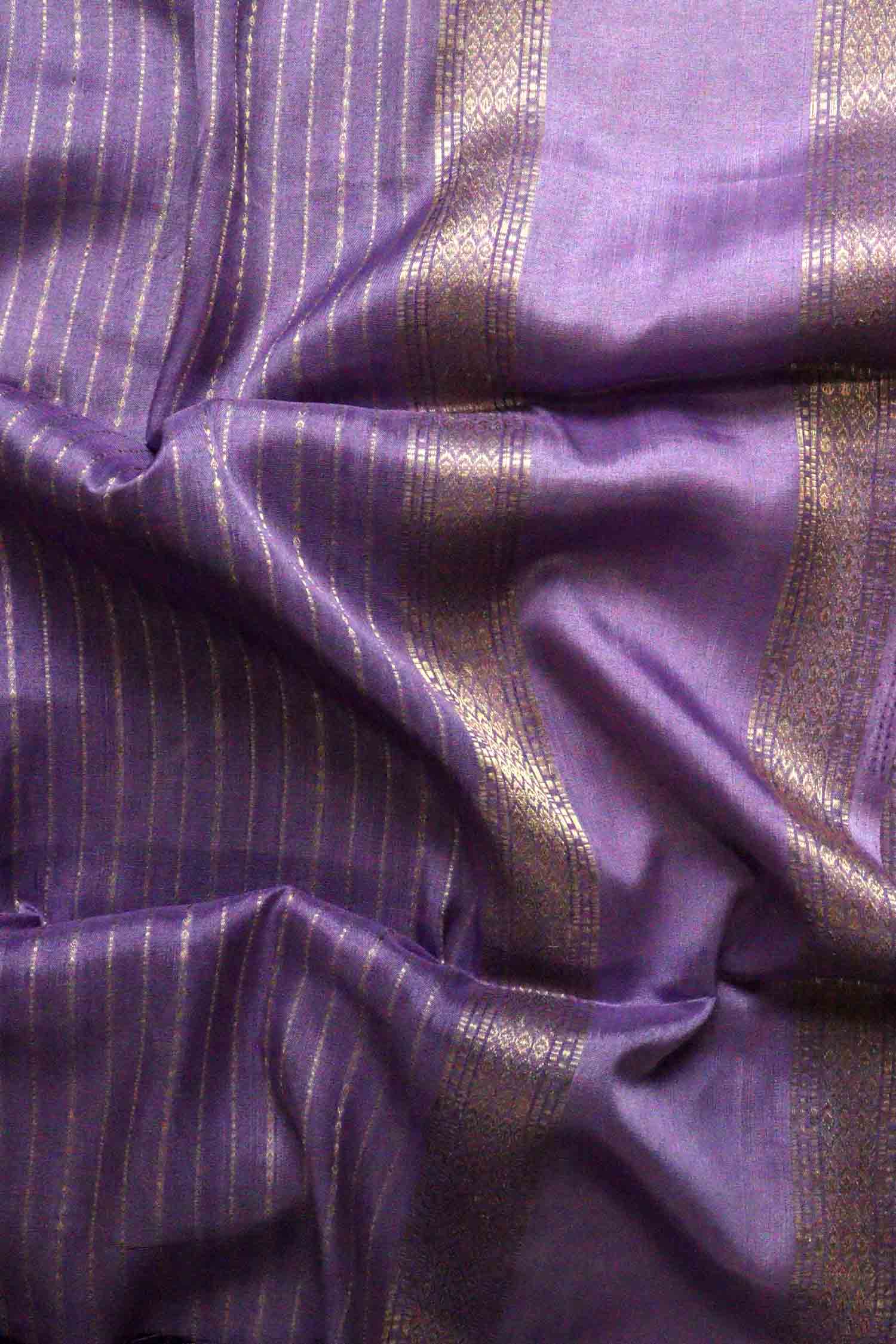 DCMS42 | Purple Mysore Crepe Silk Saree with Light Pastel Purple & Golden Zari Gap Border