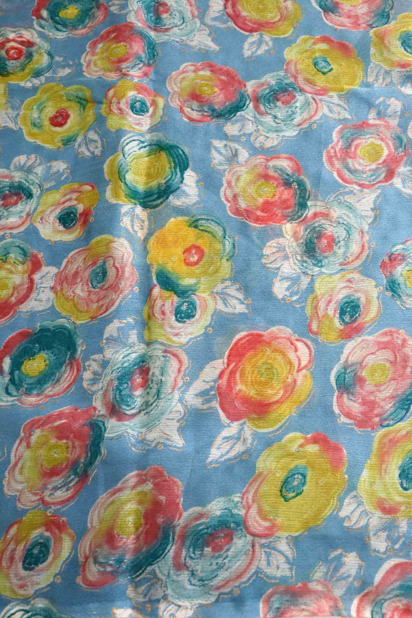 DCCH47 | Pastel Blue Pure Chiffon Saree with Floral Print & Beaded Border | Soft & Elegant