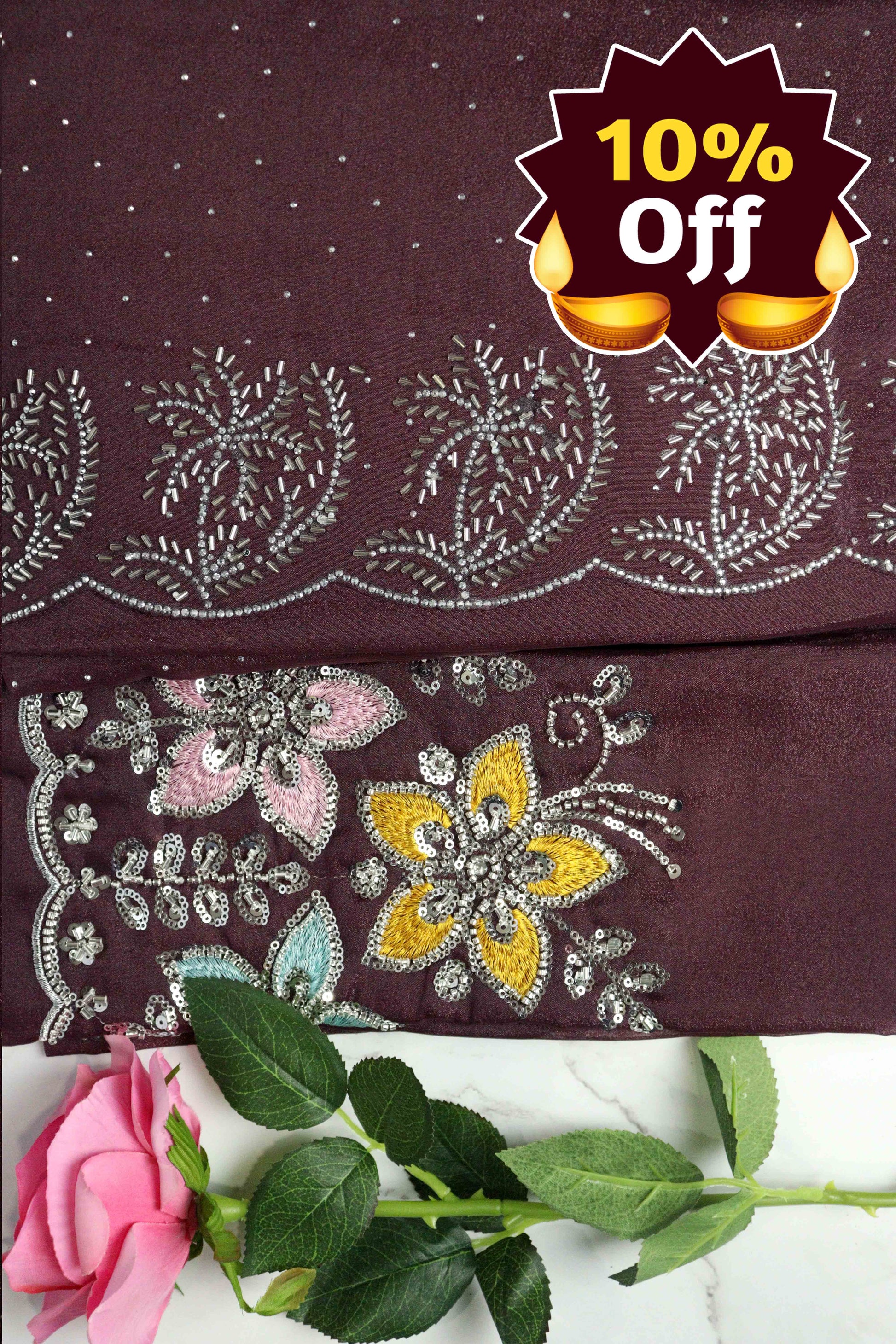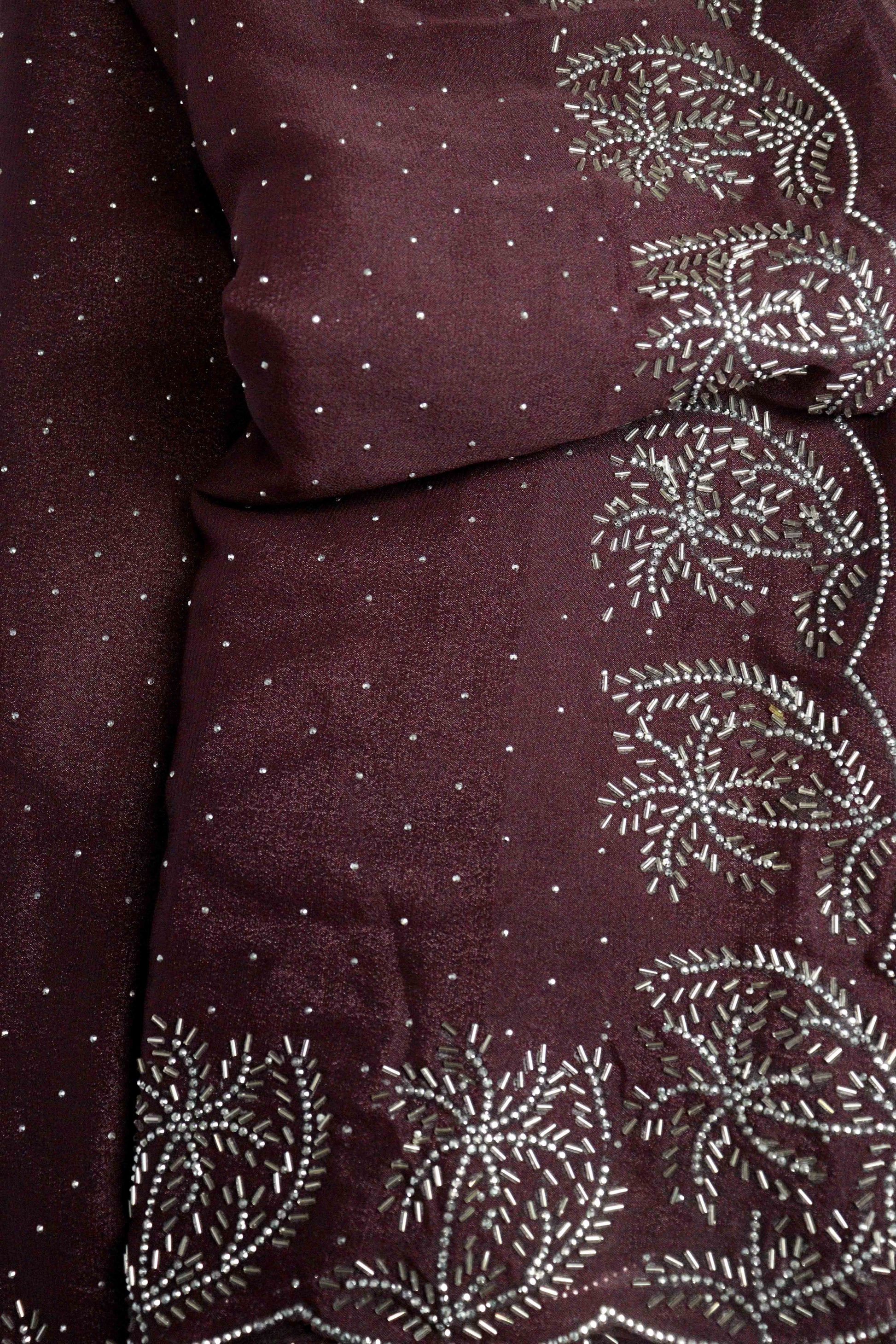 DCSS37 | Wine Stone Work Silk Saree with Swarovski & Aari Blouse